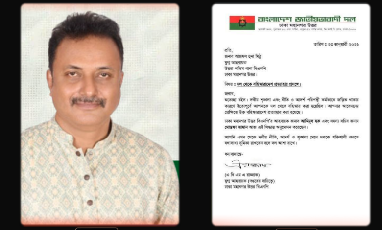 আজমল হুদা মিঠুর বহিস্কারাদেশ প্রত্যাহার করে বরণ করে নিলো বিএনপি