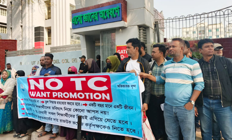 টিসি ইসু্যতে রাজউক কলেজের সামনে অভিভাবকদের মানববন্ধন