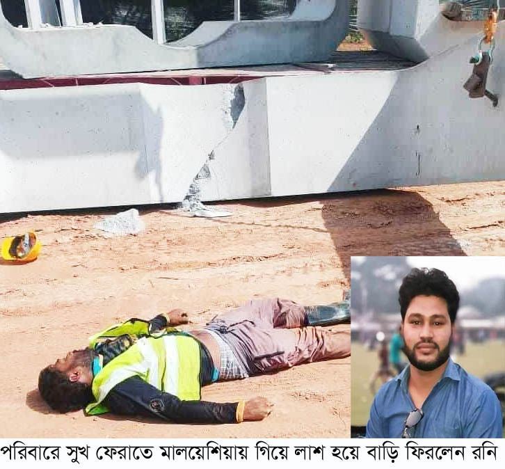 বেনাপোল প্রতিনিধি : পরিবারের সুখ ফেরাতে এবং মুখে একটু হাসি ফোটাতে ঘর ছেড়েছিল রনি। মালয়েশিয়ায় পাড়ি জমিয়েছিল নতুন জীবনের আশায়। মালয়েশিয়ায় ক্রেন দুর্ঘটনায় নিহত হয়েছেন রনি নামে এক বাংলাদেশি যুবক।