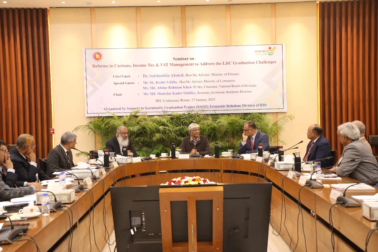 সোমবার নগরীর এনইসি সম্মেলন কক্ষে ‘রিফর্ম স ইন কাস্টমস ইনকাম ট্যাক্স অ্যান্ড ভ্যাট ম্যানেজমেন্ট টু এড্রেস দ্যা এলডিসি গ্রাজুয়েশন শীর্ষক এক সেমিনারে প্রধান অতিথির বক্তব্যে তিনি এসব কথা বলেন।