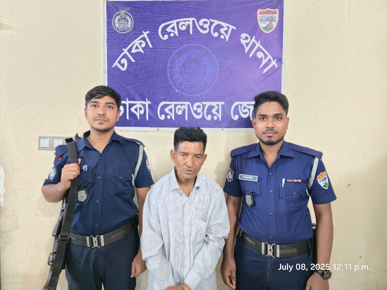 আজ সকাল সাড়ে ১১টার দিকে, গোপন সংবাদের ভিত্তিতে কমলাপুর রেলওয়ে স্টেশন এলাকায় অভিযান চালিয়ে ভৈরব রেলওয়ে থানার হত্যা মামলার পলাতক আসামি মঞ্জুর কাদের (৪০) কে গ্রেফতার করে ঢাকা রেলওয়ে থানা পুলিশ।