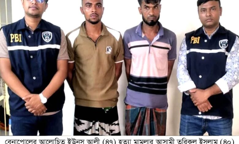বেনাপোল, ২৮ এপ্রিল ২০২৬: বেনাপোলের আলোচিত ইউনুস আলী হত্যা মামলায় আরও দুই আসামিকে আটক করেছে পুলিশ ব্যুরো অব ইনভেস্টিগেশন (পিবিআই)। আটকরা হলেন তরিকুল ইসলাম (৪০) ও সবুজ হোসেন (২১)।
