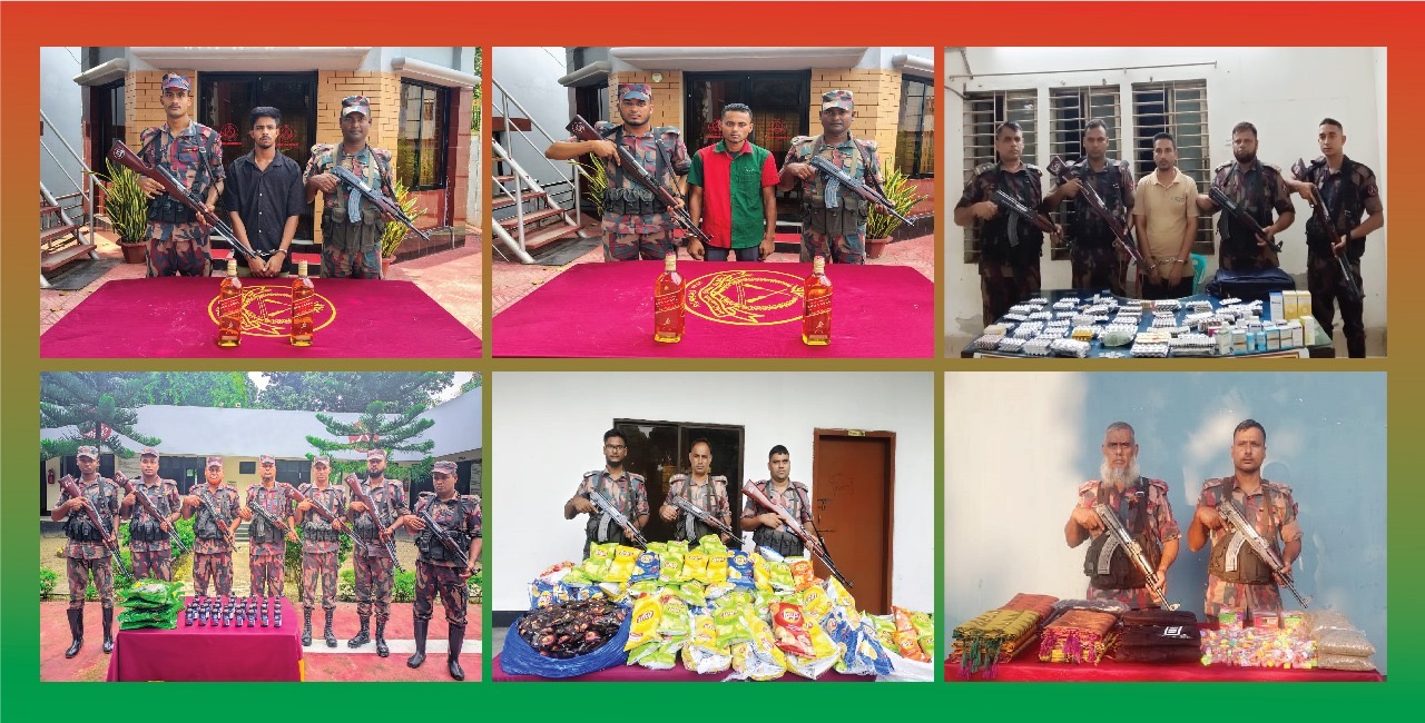 রবিবার (১০ আগস্ট) বিজিবি’র যশোর ব্যাটালিয়ন (৪৯ বিজিবি) এর টহলদল, বেনাপোল, মাসিলা বিওপি ও বেনাপোল আইসিপি এবং আমড়াখালী চেকপোষ্ট এলাকায় অভিযান চালিয়ে ৩ জন আসামী সহ বিদেশী মদ, ফেন্সিডিল, শাড়ী, বিভিন্ন প্রকার ঔষধ, পোশাক সামগ্রী, মোবাইল, হ্যান্ড ব্যাগ, জিরা, কীটনাশক, বিভিন্ন প্রকার খাদ্য সামগ্রী, ভারতীয় রুপি এবং কসমেটিক্স সামগ্রী আটক করে। আটককৃত মালামালের মূল্য ২০,৭৮,৯৩৪/-(বিশ লক্ষ আটাত্তর হাজার নয়শত চৌত্রিশ) টাকা।