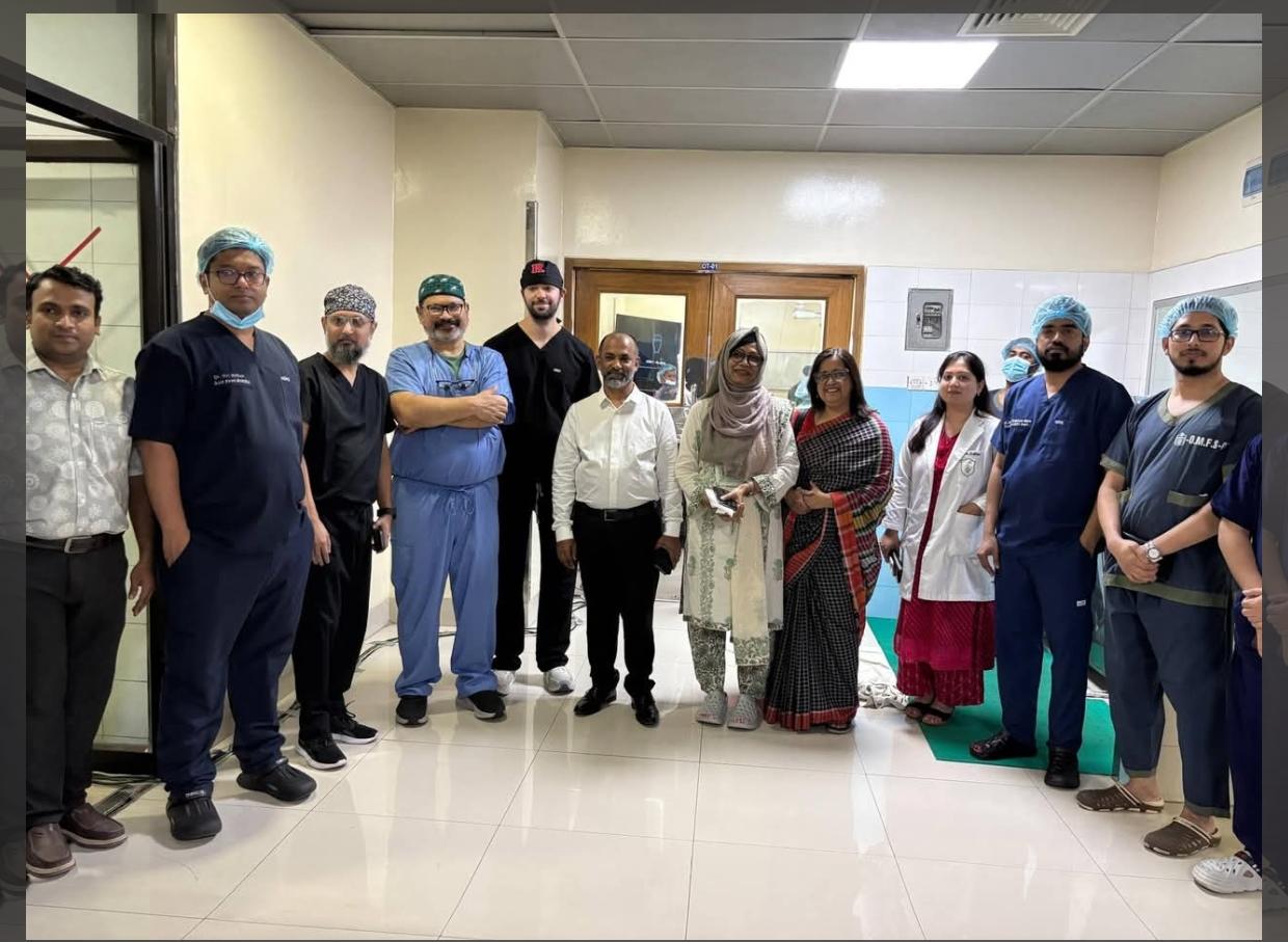 এই জটিল সার্জারিতে নেতৃত্ব দেন বিভাগের চেয়ারম্যান প্রফেসর ডা. মাহমুদা আক্তার। তার আমন্ত্রণে যুক্তরাষ্ট্রের প্রখ্যাত ম্যাক্সিলোফেসিয়াল সার্জন প্রফেসর ডা. শাহিদ আজিজ এতে অংশ নেন। সার্জারিটি লাইভ হিসেবে পরিচালিত হয়।
