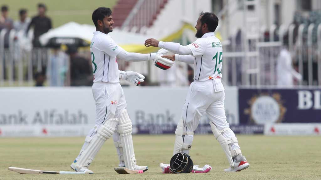 মুক্তমন ডেস্ক : মুশফিকুর রহিমের অসাধারণ সেঞ্চুরি ও মেহেদী হাসান মিরাজের দৃঢ়তায় পাকিস্তানের বিপক্ষে সিরিজের প্রথম টেস্টে লিড নিয়েছে বাংলাদেশ। ৬ উইকেট হারিয়ে ৪৪৮ রানে প্রথম ইনিংস ঘোষণা করেছিল পাকিস্তান। রাওয়াপিন্ডিতে চতুর্থ দিনের চা-বিরতির আগেই তা পেরিয়ে যায় বাংলাদেশ।