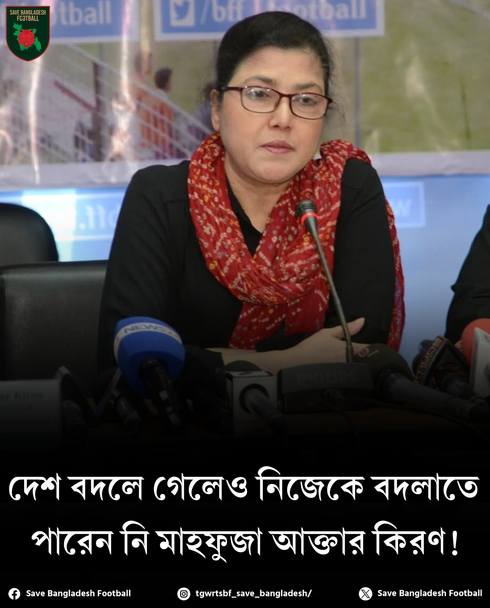 মুক্তমন ডেস্ক : বাংলাদেশ ফুটবল ফেডারেশন, বাফুফের উইম্যান্স উইং চেয়ারম্যান মাহফুজা আক্তার কিরণের বিরুদ্ধে বাংলাদেশ নারী ফুটবল দলকে পেছনের দিকে টেনে ধরার অভিযোগ উঠেছে। দেশের ফুটবল জাগরণের অন্যতম নির্দলীয় ‘সেভ বাংলাদেশ ফুটবল’ নামের গ্রুপে এই অভিযোগ তোলা হয়েছে।