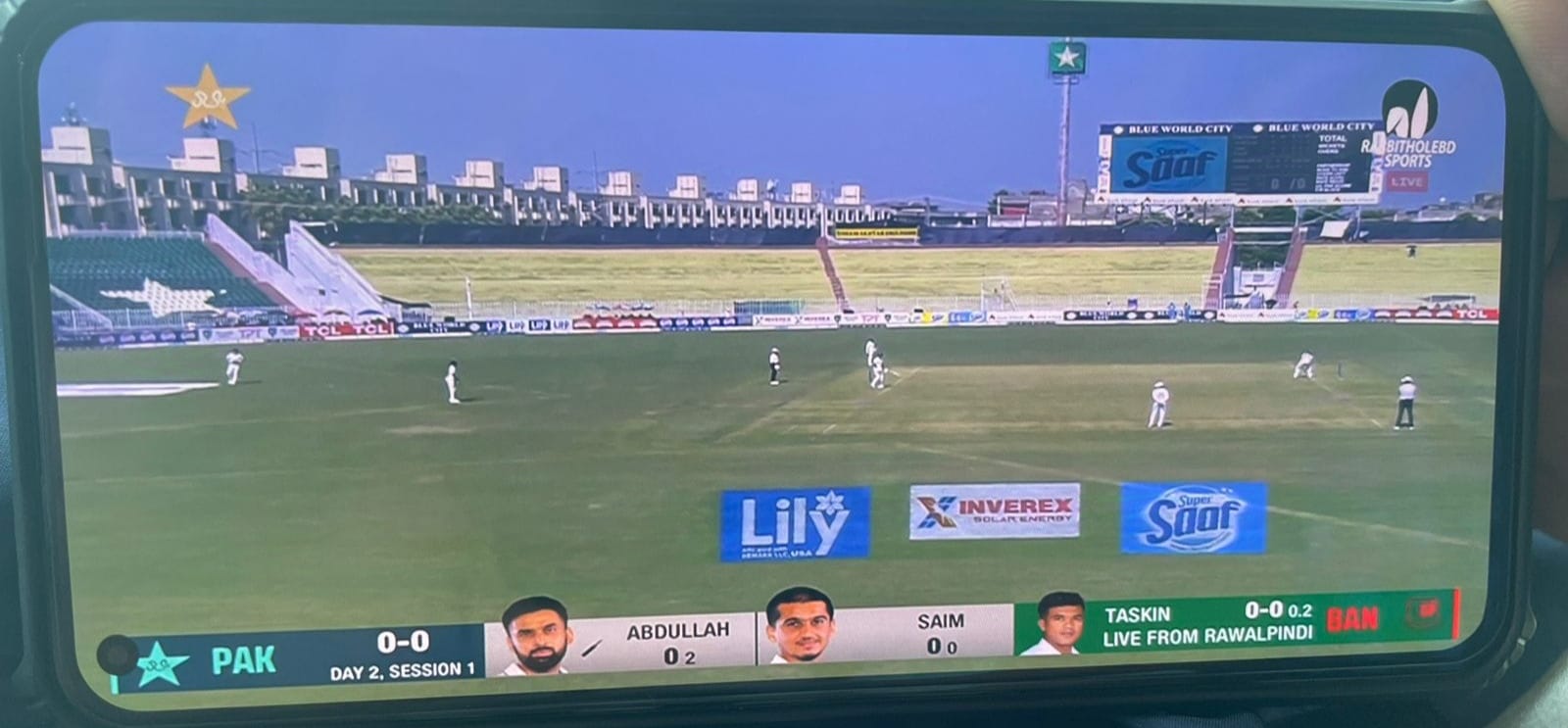 শুক্রবার পাকিস্তানের রাওয়ালপিণ্ডিতে দুই দলের টেস্ট ম্যাচ শুরু হয়। প্রথম টেস্ট ম্যাচ বাংলাদেশ ১০ উইকেটে জয় লাভ করায় এই ম্যাচকে ঘিরে ক্রিকেটপ্রেমিদের আগ্রহ তুঙ্গে। নয়নাভিরাম রাওয়ালপিণ্ডি স্টেডিয়ামে স্বাগতিক পাকিস্তানের একাধিক ব্র্যান্ডের সঙ্গে লিলি ব্র্যান্ডের বিজ্ঞাপণ মাঠকে যেন নতুন রং দিয়েছে। যেন পাকিস্তানের বুকে একখন্ড বাংলাদেশ।