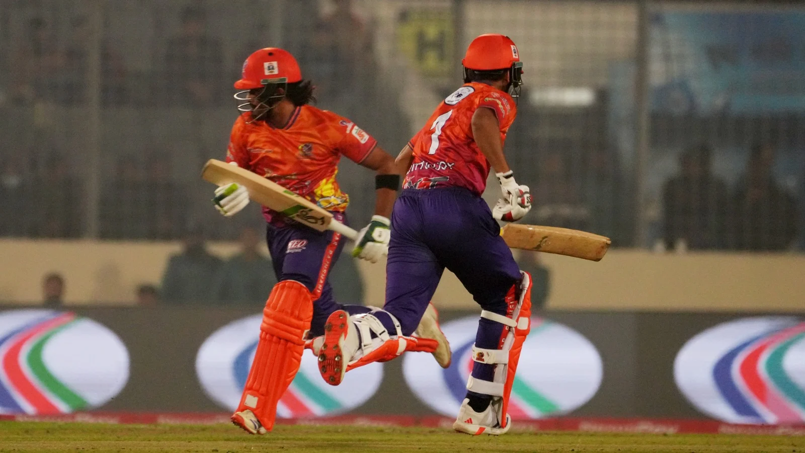 রান তাড়ায় শুরুতেই মৃত্যুঞ্জয়ের তোপের মুখে পড়ে রংপুর। নিজের প্রথম ৩ ওভারেই ফেরান সৌম্য সরকার, সাইফ হাসান, শেখ মেহেদী ও নুরুল হাসান সোহানকে। এর আগে শুরুতেই প্রথম ওভারে স্টিভেন টেইলরকে ড্রেসিংরুমের পথ ধরান তাসকিন আহমেদ। ইফতিখার আহমেদ ও খুশদিল শাহর ফেরেন মহর শেখের শিকার হয়ে। ৪৯ রানেই ৭ উইকেট শুরুতেই বিপর্যয়ে ফেরা রংপুর আর ম্যাচে ফিরতে পারেননি।