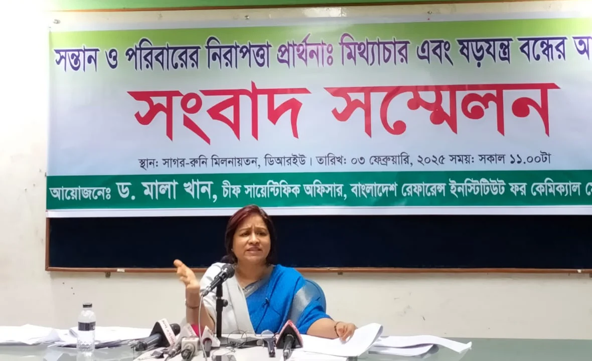 সংবাদ সম্মেলনে ড. মালা খান অভিযোগ করেন যে, মিথ্যা অভিযোগ তুলে বিআরআইসিএম এর মহাপরিচালকের পদ থেকে পদত্যাগে বাধ্য করানোর পর এখন প্রতিষ্ঠানের চিফ সায়েন্টিফিক অফিসারের পদ থেকেও তাকে পদত্যাগের জন্য প্রতিনিয়ত চাপ দেয়া হচ্ছে। অফিস থেকে বরখাস্তের দাবি তোলা হচ্ছে। সকল ষড়যন্ত্র যখন একে একে ব্যর্থ হয়েছে, তখন নতুন করে মিথ্যা অভিযোগ তোলা হচ্ছে। এর বাইরে সামাজিক ও পারিবারিকভাবে নিরাপত্তাহীনতা তৈরি করা হচ্ছে। যারা এগুলো করছেন তারা ষড়যন্ত্রকারী এবং বিআরআইসিএমকে ধ্বংস করাই তাদের লক্ষ্য। এমতাবস্থায় নিজের ও পরিবারের নিরাপত্তাসহ সকল মিথ্যাচার ও ষড়যন্ত্র বন্ধে অন্তর্বর্তীকালীন সরকারের কাছে দাবি জানিয়েছেন তিনি।