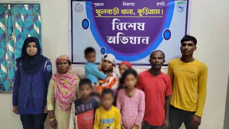 আটককৃতরা হলেন- বাইদুল ইসলাম (৬৫), তার স্ত্রী মোছা: আমিরন বেগম (৪৫) মেয়ে রুমি খাতুন (২০) জামাতা আপেল (২৯) নাতি হৃদয় (৩), মোছা: মিনা বেগম (৩০) স্বামী জয়নাল আবেদীন তার মেয়ে জুই (১০) মীম (৭) এবং নুর হামিদ (৭) পিতা আমিনুল ইসলাম সকলের গ্রাম চন্দ্রখানা বজরের খামার উপজেলা ফুলবাড়ী জেলা কুড়িগ্রাম। তারা সকলেই কুড়িগ্রামের ফুলবাড়ী উপজেলার চন্দ্রখানা বজরের খামার গ্রামের বাসিন্দা।লালমনিরহাট ১৫ বিজিবি ব্যাটালিয়নের অধিনায়ক লে. কর্নেল মেহেদী ইমাম জানান, আটক নয় জনের পরিচয় নিশ্চিত হওয়ার পর ফুলবাড়ী থানায় হস্তান্তর করা হয়েছে। এ ঘটনায় থানায় সাধারণ ডায়েরি করা হয়েছে।