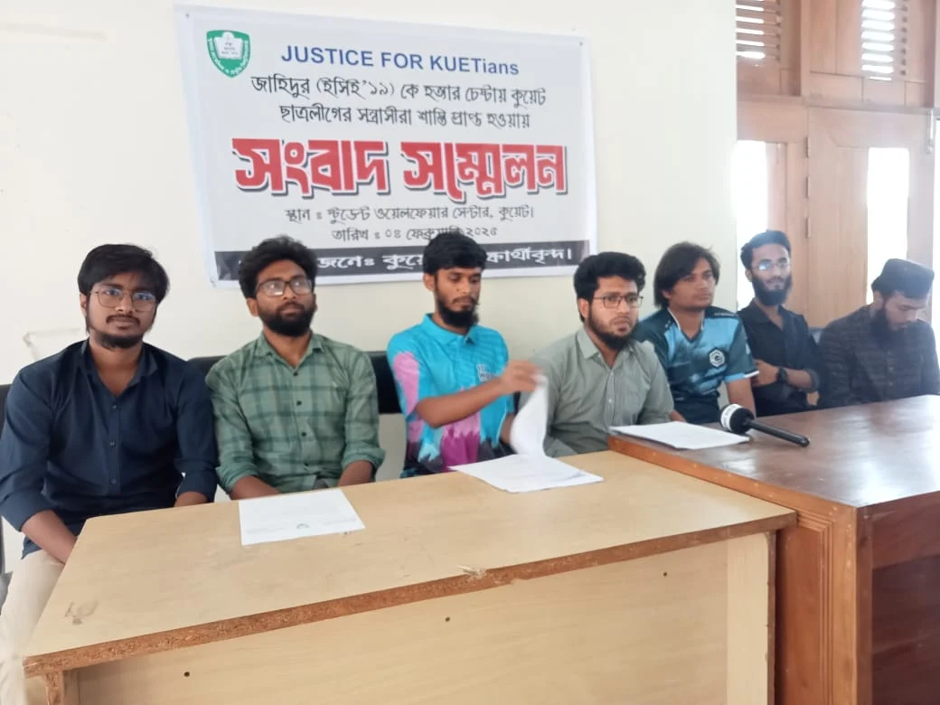 মঙ্গলবার বিকেলে কুয়েটের স্টুডেন্ট ওয়েলফেয়ার সেন্টারে এক সংবাদ সম্মেলনে কথা বলছিলেন তিনি। জাস্টিস ফর কুয়েটিয়ানস এর ব্যানারে অনুষ্ঠিত এ সংবাদ সম্মেলন থেকে বিশ্ববিদ্যালয় প্রশাসনের কাছে চার দফা দাবি পেশ করা হয়।
