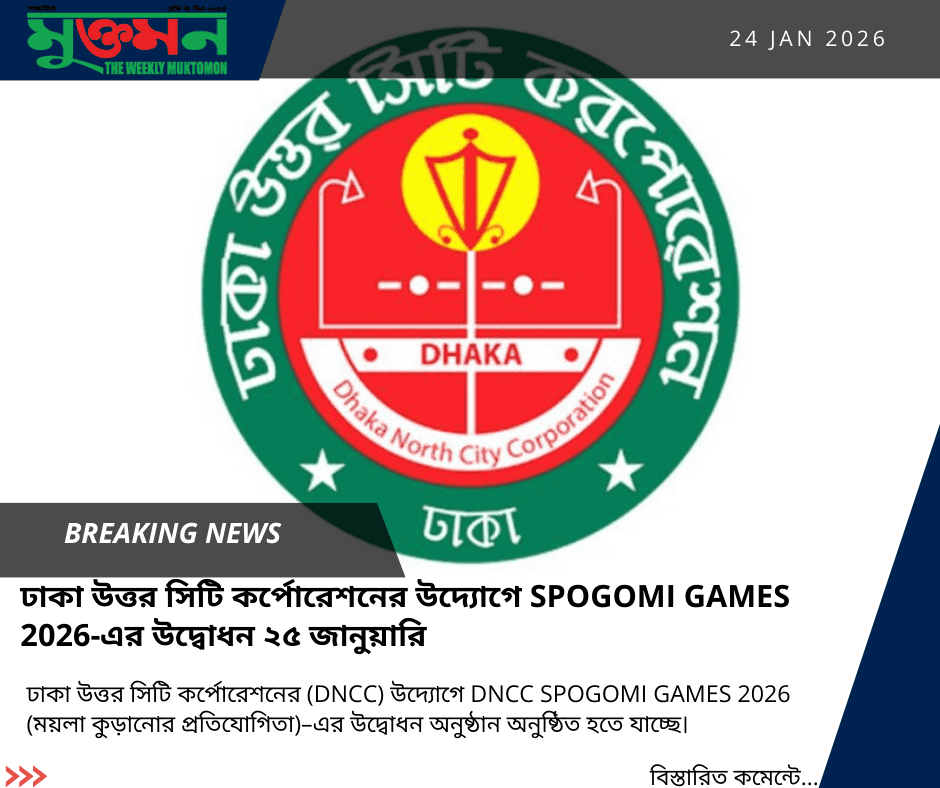 ঢাকা উত্তর সিটি কর্পোরেশনের (DNCC) উদ্যোগে DNCC SPOGOMI GAMES 2026 (ময়লা কুড়ানোর প্রতিযোগিতা)–এর উদ্বোধন অনুষ্ঠান অনুষ্ঠিত হতে যাচ্ছে। আগামী ২৫ জানুয়ারি ২০২৬ (রবিবার) সকাল ১১টা থেকে এ উদ্বোধন অনুষ্ঠান আয়োজন করা হবে উত্তরখান এলাকার বজলুল হক খান স্কুল অ্যান্ড কলেজের মাঠে।