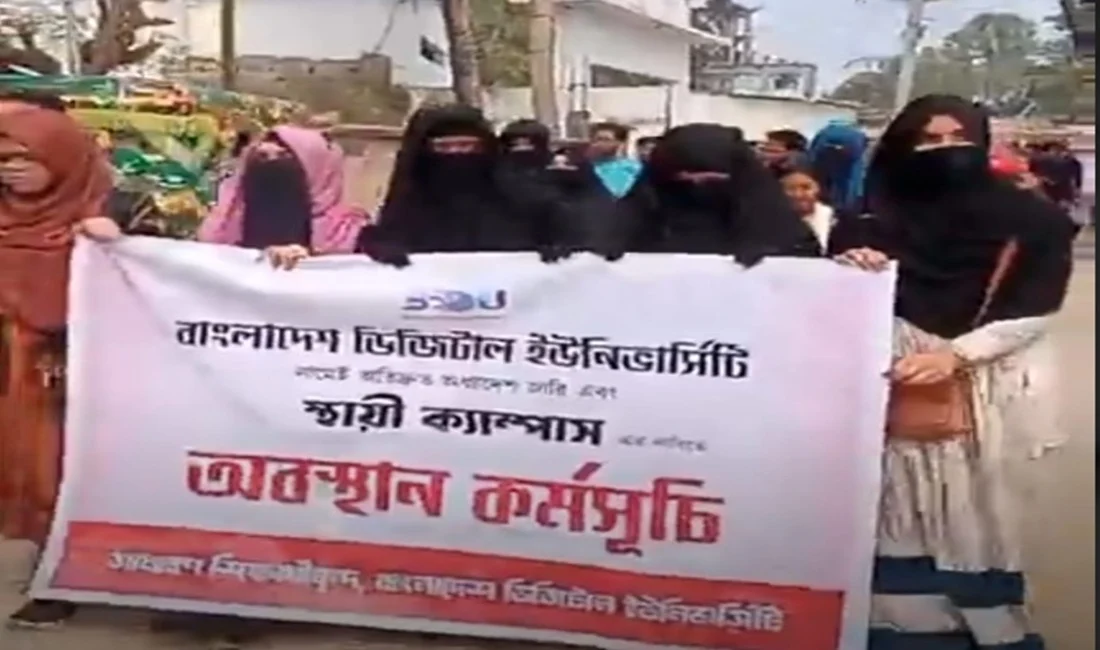 বাংলাদেশ ডিজিটাল ইউনিভার্সিটির স্থায়ী ক্যাম্পাস ও বঙ্গবন্ধু ডিজিটাল ইউনিভার্সিটির নাম পরিবর্তন করে বাংলাদেশ ডিজিটাল ইউনিভার্সিটি নামকরণ করে প্রজ্ঞাপন জারির দাবিতে বৃহস্পতিবার সকাল ১১টায় শিক্ষার্থীরা ঢাকা-টাঙ্গাইল মহাসড়কে বিক্ষোভ মিছিল করে ফায়ার সার্ভিস অফিসের সামনে অবস্থান নিয়ে স্লোগান দিতে থাকেন। এ সময় মহাসড়কে যান চলাচল বন্ধ হয়ে যায়। দুপুর সোয়া ১টায় এ রিপোর্ট লেখা পর্যন্ত অবস্থান কর্মসূচি চলছে।