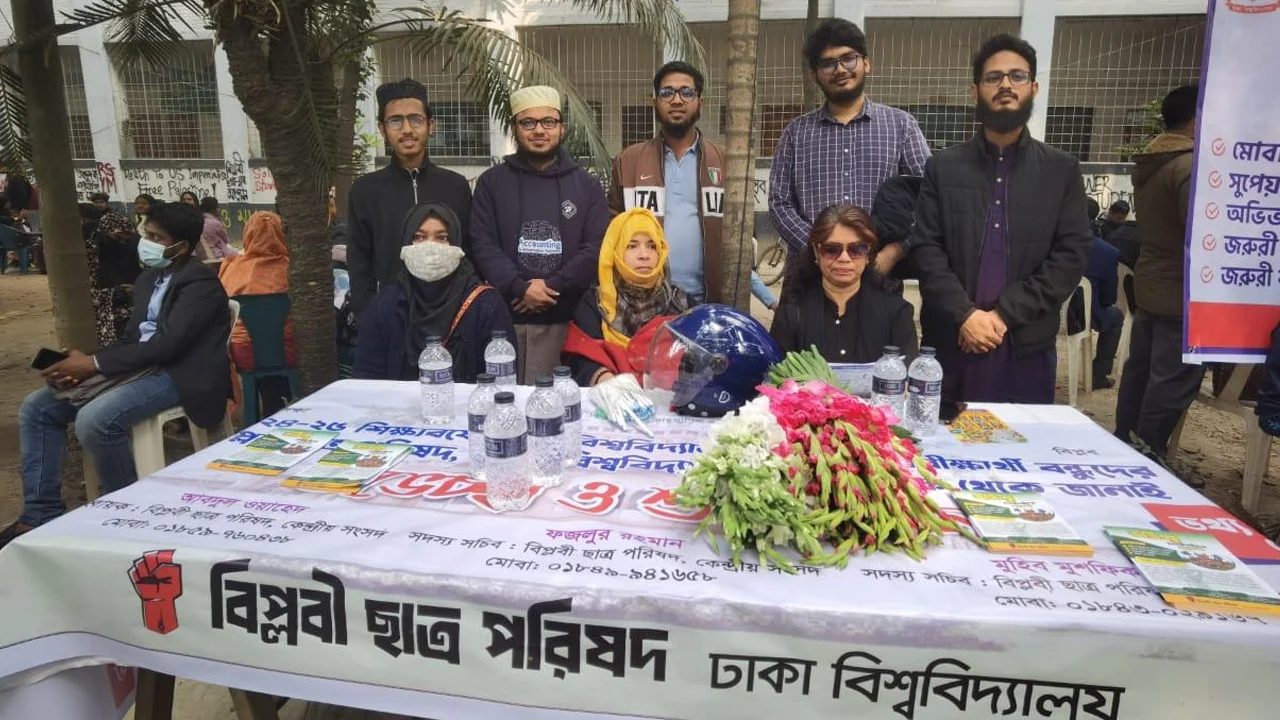ভর্তিচ্ছুদের সহায়তা করতে কলা ভবনের সামনে তথ্য সহায়তা ডেস্ক স্থাপন করে বিপ্লবী ছাত্র পরিষদের ঢাকা বিশ্ববিদ্যালয় শাখা।