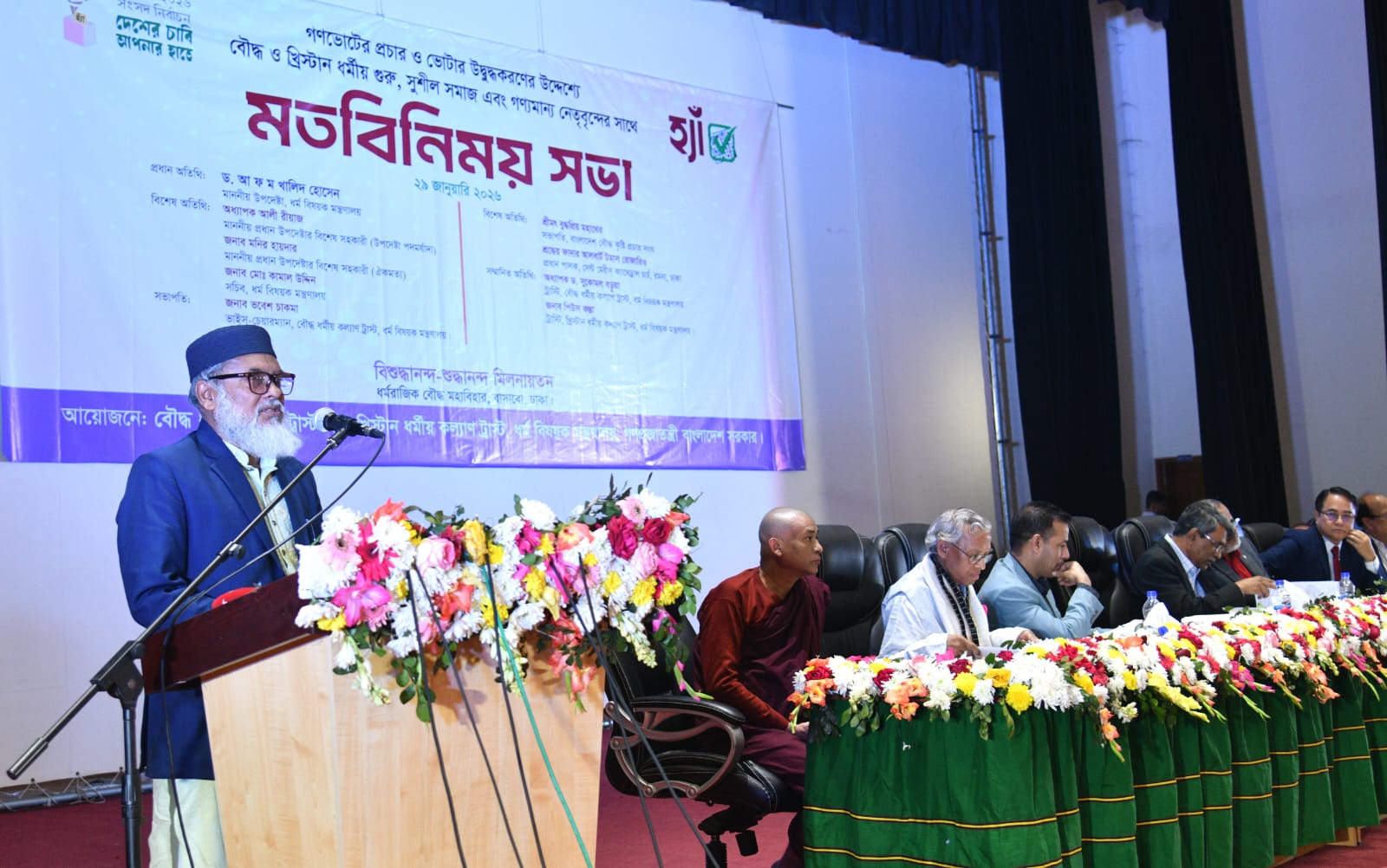 বিকালে রাজধানীর বাসাবোতে ধর্মরাজিক বৌদ্ধ মহাবিহার মিলনায়তনে গণভোটের প্রচার ও ভোটার উদ্বুদ্ধকরণ উপলক্ষে আয়োজিত এক মতবিনিময় সভায় প্রধান অতিথির বক্তব্যে তিনি এ কথা বলেন। সভার আয়োজন করে বৌদ্ধ ধর্মীয় কল্যাণ ট্রাস্ট ও খ্রিষ্টান ধর্মীয় কল্যাণ ট্রাস্ট।