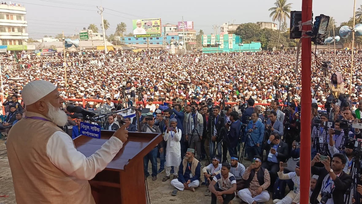 জামায়াতে ইসলামী দেশ পরিচালনার দায়িত্ব পেলে দেশে ইনসাফ ভিত্তিক উন্নয়ন হবে বলে আশ্বাস দিয়েছেন আমীর বলেছেন, কথা দিচ্ছি আপনাদের খেদমতের দায়িত্ব পেলে ন্যায্য দাবিগুলো চাওয়া ছাড়াই বাস্তবায়ন হবে। কথা দিচ্ছি রক্তের বিনিময়ে হলেও দেশে চাঁদাবাজি বন্ধ করবো। জুলুমবাজি থাকবে না। দখলবাজিও থাকবে না। আমাদের সন্তানদের সাথে তাল মিলিয়ে বলতে চাই ‘আবু সাঈদ মুগ্ধ শেষ হয়নি যুদ্ধ’।