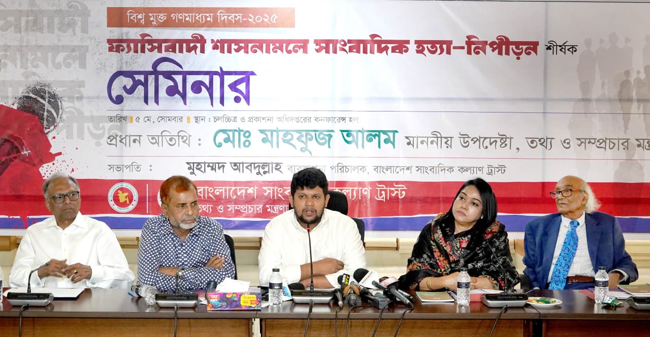 মুক্তমন ডেস্ক : ফ্যাসিবাদের পক্ষে সম্মতি উৎপাদন না করতে গণমাধ্যমের প্রতি আহ্বান জানিয়েছেন তথ্য ও সম্প্রচার উপদেষ্টা মোঃ মাহফুজ আলম। সোমবার (৫ই মে) তথ্য ভবনে বিশ্ব মুক্ত গণমাধ্যম দিবস ২০২৫ উপলক্ষ্যে বাংলাদেশ সাংবাদিক কল্যাণ ট্রাস্টের উদ্যোগে 'ফ্যাসিবাদী শাসনামলে সাংবাদিক হত্যা-নিপীড়ন' শীর্ষক সেমিনারে উপদেষ্টা এই আহ্বান জানান।