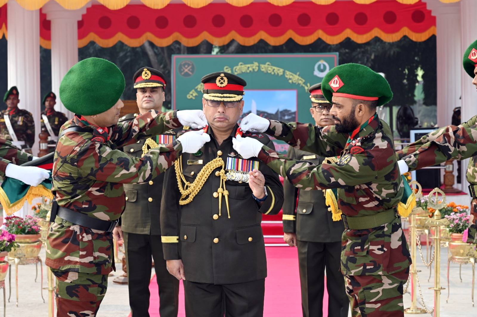 আজ (২৭ ফেব্রুয়ারি ২০২৫) রাজশাহী সেনানিবাসস্থ 'রেজিমেন্ট অব দি মিলিনিয়াম' হিসেবে খ্যাত বাংলাদেশ ইনফ্যান্ট্রি রেজিমেন্টাল সেন্টার (বিআইআরসি)-এ যথাযোগ্য সামরিক মর্যাদায় বাংলাদেশ ইনফ্যান্ট্রি রেজিমেন্টের 'কর্নেল অব দি রেজিমেন্ট হিসেবে অভিষিক্ত হলেন সেনাবাহিনী প্রধান জেনারেল ওয়াকার-উজ-জামান, এসবিপি, ওএসপি, এসজিপি, পিএসসি। এই অনুষ্ঠানের মধ্য দিয়ে '৭ম কর্নেল অব দি রেজিমেন্ট' হিসেবে সেনাবাহিনী প্রধান সামরিক রীতি অনুযায়ী বাংলাদেশ ইনফ্যান্ট্রি রেজিমেন্টের অভিভাবকত্ব গ্রহণ করলেন। সেনাবাহিনী প্রধান অনুষ্ঠানস্থলে পৌঁছালে তাঁকে প্রচলিত সামরিক রীতি অনুযায়ী আনুষ্ঠানিকভাবে অভিবাদন জানানো হয় এবং বাংলাদেশ ইনফ্যান্ট্রি রেজিমেন্টের একটি চৌকষ দল গার্ড অব অনার প্রদান করেন। এরপর বাংলাদেশ ইনফ্যান্ট্রি রেজিমেন্টের জ্যেষ্ঠতম অধিনায়ক এবং জ্যেষ্ঠতম মাস্টার ওয়ারেন্ট অফিসার সেনাবাহিনী প্রধানকে বাংলাদেশ ইনফ্যান্ট্রি রেজিমেন্টের 'কর্নেল র্যাংক ব্যাজ' পরিয়ে দেন।