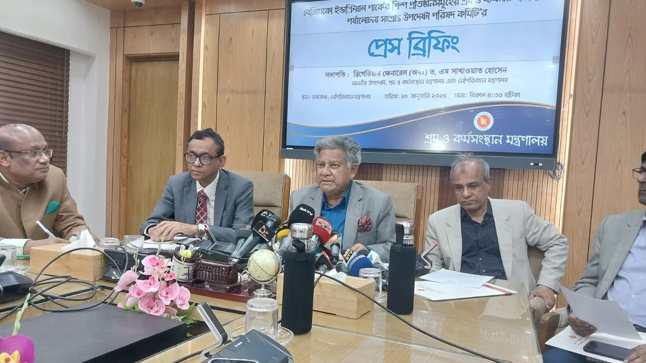 মঙ্গলবার বেক্সিমকো ইন্ডাস্ট্রিয়াল পার্কে অবস্থিত কোম্পানিগুলো নিয়ে গঠিত উপদেষ্টা পরিষদের বৈঠক শেষে সাংবাদিকদের ব্রিফিংয়ে এ তথ্য জানিয়েছেন শ্রম ও কর্মসংস্থান উপদেষ্টা বিগ্রেডিয়ার জেনারেল অবসরপ্রাপ্ত সাখাওয়াত হোসেন।