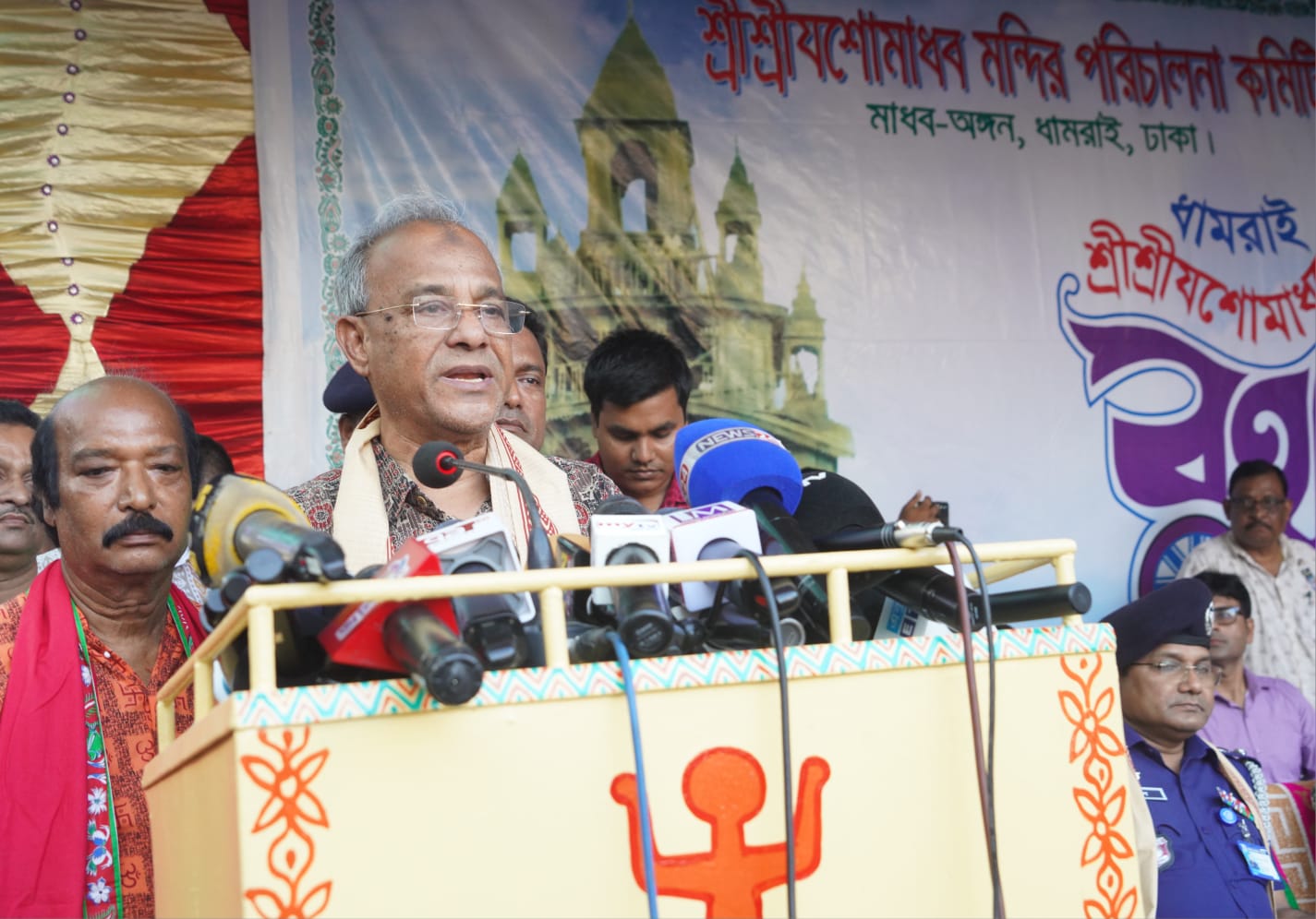 শ্রীশ্রী যশোমাধব মন্দির পরিচালনা কমিটির সভাপতি মেজর জেনারেল জীবন কানাই দাস (অব.) এর সভাপতিত্বে অনুষ্ঠানে শুভেচ্ছা বক্তৃতা করেন ঢাকা জেলার পুলিশ সুপার মো. আনিসুজ্জামান পিপিএম ও ঢাকার অতিরিক্ত জেলা ম্যাজিস্ট্রেট মো. মিজানুর রহমান। স্বাগত বক্তব্য রাখেন সুকান্ত বণিক।