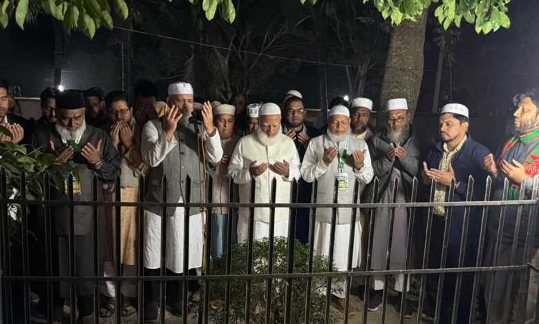 কবর জিয়ারত শেষে আমীরে জামায়াত মহান আল্লাহর দরবারে শহীদ মাওলানা মতিউর রহমান নিজামী রাহিমাহুল্লাহর রূহের মাগফিরাত কামনা করেন এবং তাঁর শাহাদাত কবুলিয়াতের জন্য দোয়া ও মোনাজাত করেন।