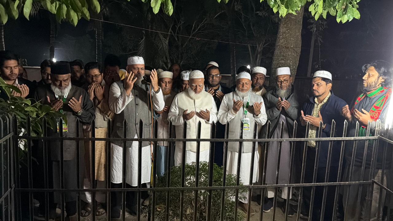কবর জিয়ারত শেষে আমীরে জামায়াত মহান আল্লাহর দরবারে শহীদ মাওলানা মতিউর রহমান নিজামী রাহিমাহুল্লাহর রূহের মাগফিরাত কামনা করেন এবং তাঁর শাহাদাত কবুলিয়াতের জন্য দোয়া ও মোনাজাত করেন।