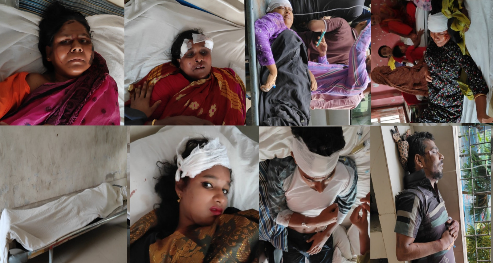 আহতদের মধ্যে রয়েছেন পারভীনা (৪৮), সাথী (৩২), খায়রুননেসা (৫৫), ডলি (৩৮), সুফিয়া খাতুন (৬০), মেহেরুল্লা (২৪) ও নুরুজ্জামান (৪০)।
