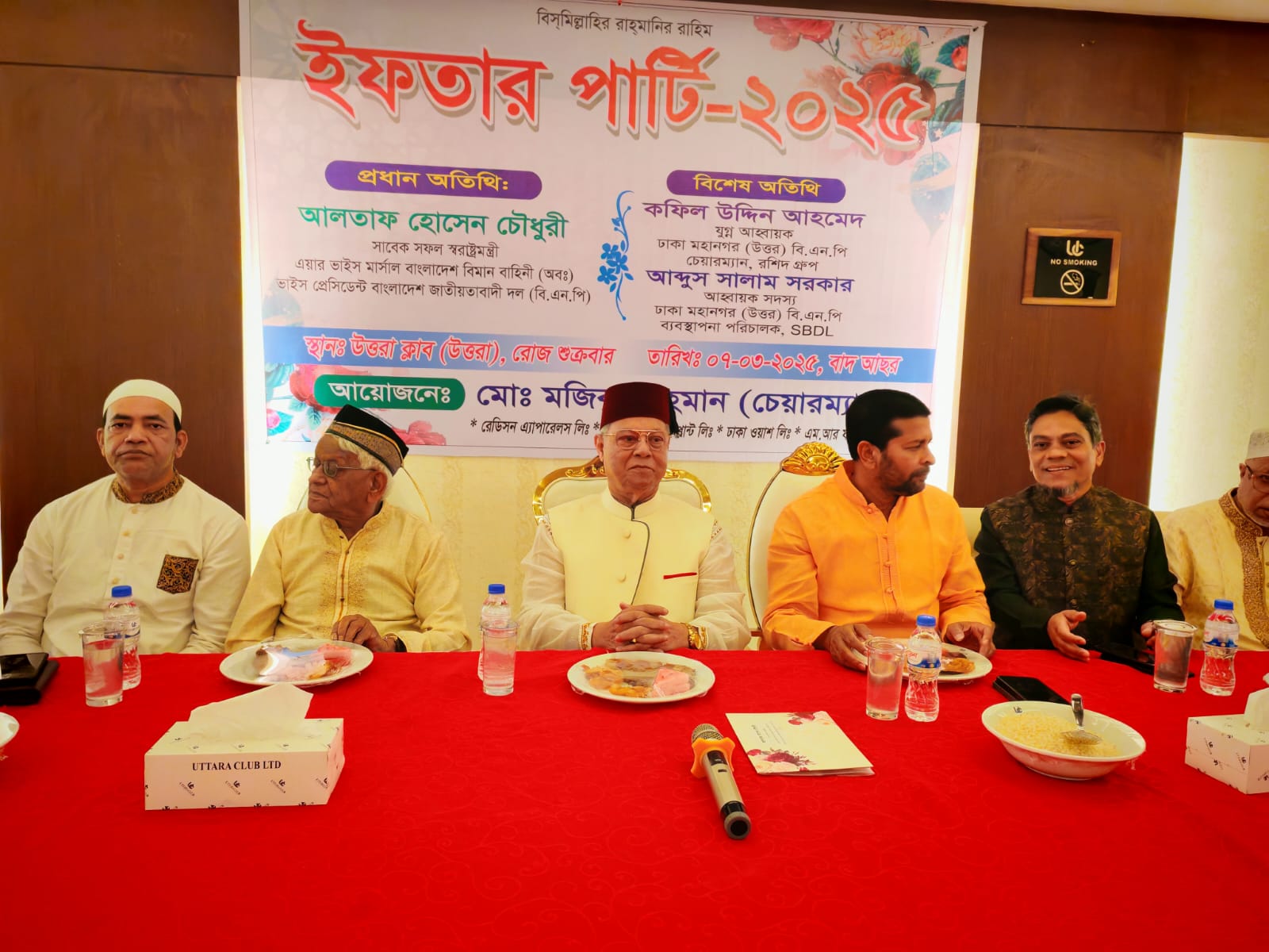 ইব্রাহিম হাসান ঃ উত্তরা ক্লাবে বিশিষ্টজনদের সম্মানে ইফতার মাহফিল অনুষ্ঠিত হয়। (৭মার্চ) রোজ শুক্রবার উত্তরা ক্লাবের ভিআইপি লাউঞ্জে ইফতার মাহফিল অনুষ্ঠিত হয়।এতে প্রধান অতিথি অতিথি হিসেবে উপস্থিত ছিলেন সাবেক স্বরাষ্ট্রমন্ত্রী ও বিএনপির ভাইস প্রেসিডেন্ট আলতাব হোসেন চৌধুরী।