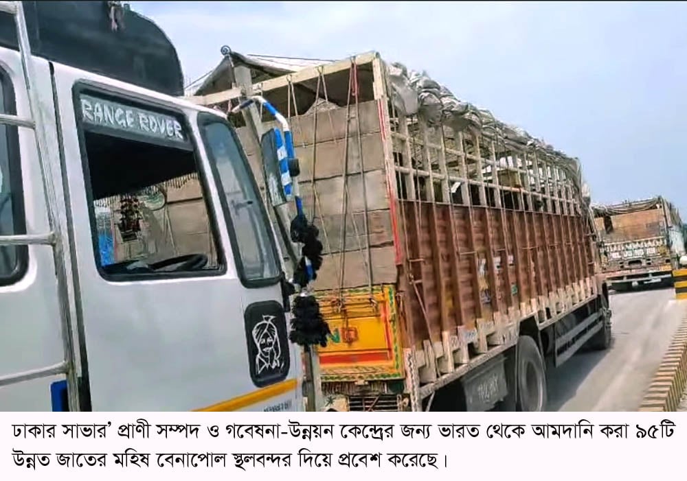 মসিয়ার রহমান কাজল,বেনাপোলঃ ঢাকার সাভার’ প্রাণী সম্পদ ও গবেষনা-উন্নয়ন কেন্দ্রের জন্য ভারত থেকে আমদানি করা হয়েছে ৯৫টি উন্নত জাতের মহিষ।