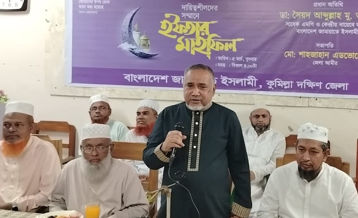 বুধবার কুমিল্লা দক্ষিণ জেলা জামায়াত আয়োজিত ছাত্রশিবিরের সাবেক-বর্তমান দায়িত্বশীলদের সম্মানে ইফতার মাহফিলে প্রধান অতিথির বক্তব্য তিনি এ কথা বলেন।