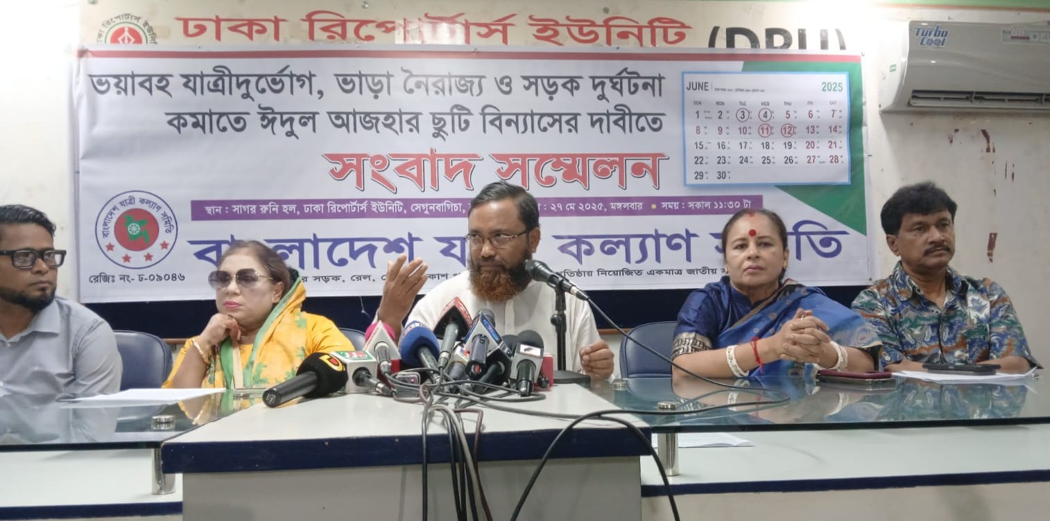 তিনি বলেন, আসন্ন পবিত্র ঈদুল আজহায় সরকারের পক্ষ থেকে ১০ দিন ছুটি ঘোষণার বিষয়টি ইতিপূর্বে গণমাধ্যমে চাউর হয়েছে। কিন্তু কোন প্রকার সমীক্ষা ছাড়াই এই ছুটি ঘোষনা করায় দেশের যাত্রীসাধারন এবারের আসন্ন ঈদুল আজহায় ভয়াবহ দুর্ভোগে পড়তে যাচ্ছে। বাংলাদেশ যাত্রী কল্যাণ সমিতির পক্ষ থেকে ইতোমধ্যে বিষয়টি সরকারের সড়ক পরিবহন উপদেষ্টা, স্থানীয় সরকার উপদেষ্টাসহ সংশ্লিষ্টদের জানানো হলেও তেমন কোন সাড়া মেলেনি।