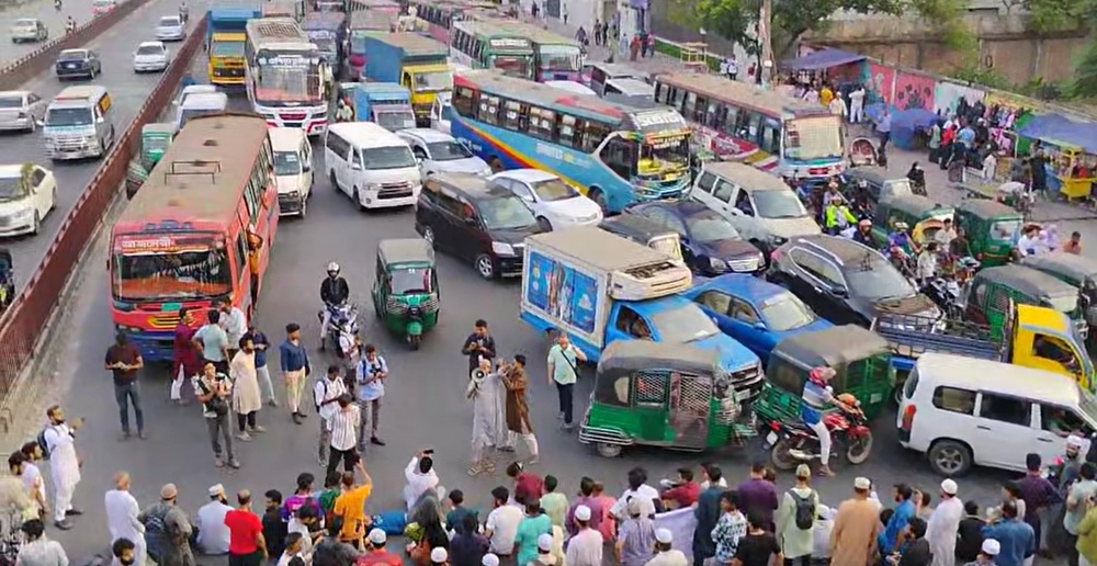 মুক্তমন রিপোর্ট : জুলাই হত্যাকান্ডের সঙ্গে জড়িত দল আওয়ামী লীগ নিষিদ্ধের দাবিতে উত্তরায় ঢাকা-ময়মনসিংহ মহাসড়ক অবরোধ করে বিক্ষুব্ধ জনতা। জুলাই রেভুলেশনারি আ্যালায়েন্স এর ডাকে এই অবরোধ কর্মসূচী পালন করা হয়। জুলাই আন্দোলন কেন্দ্রীক বেশ কয়েকটি সংগঠন এতে সক্রিয় অংশ নেয়।