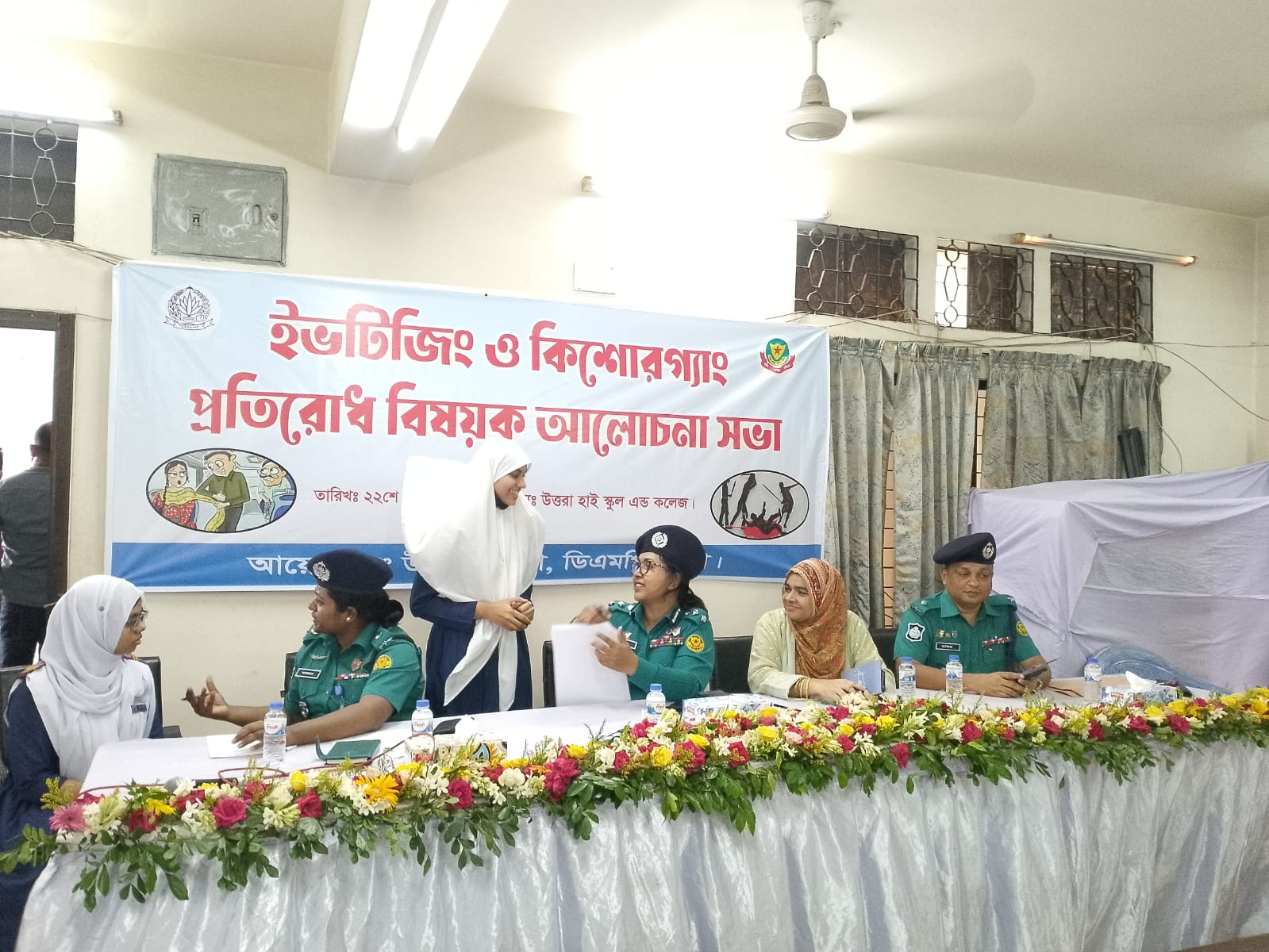 এইচ এম মাহমুদ হাসান : রাজধানীর উত্তরায় ইভটিজিং, কিশোর গ্যাং, মাদক, বাল্যবিবাহ, সন্ত্রাস ও জঙ্গিবাদ প্রতিরোধে শিক্ষার্থীদের সাথে এক সচেতনতামূলক আলোচনা সভা অনুষ্ঠিত হয়েছে।