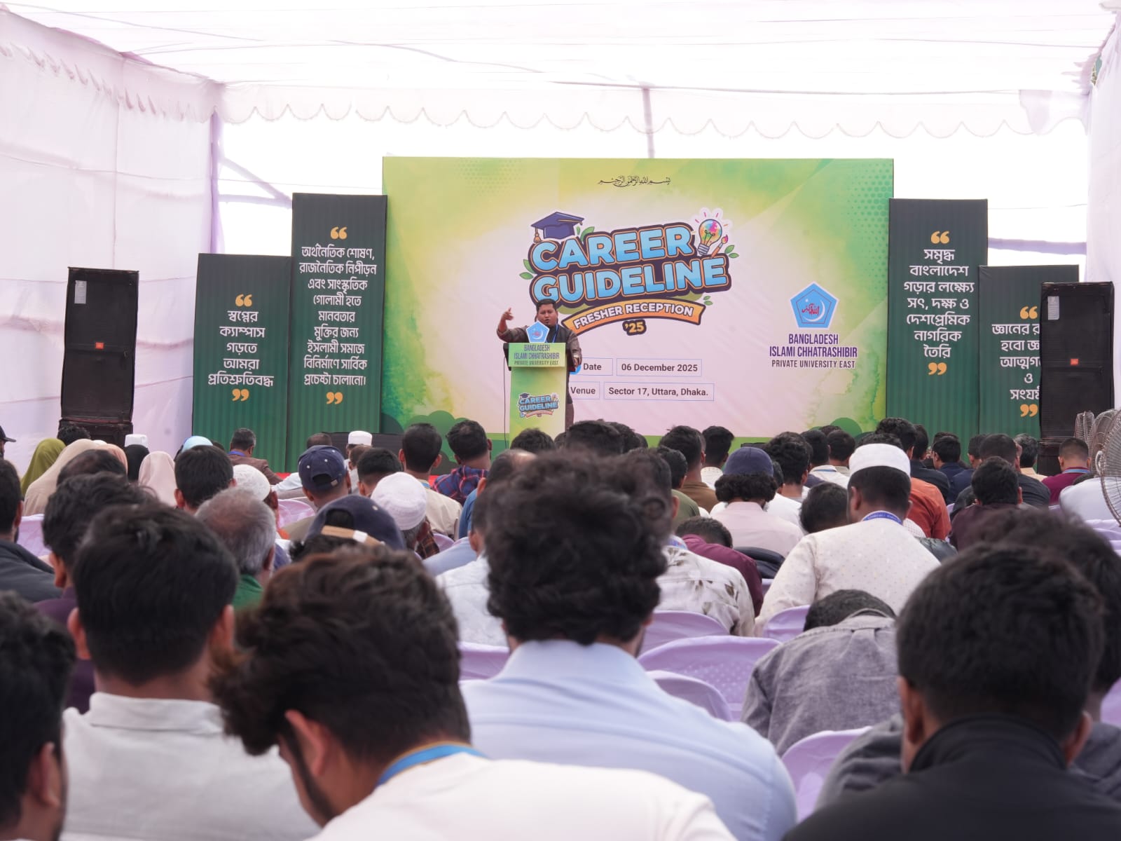 এতে প্রধান অতিথি হিসেবে উপস্থিত ছিলেন ছাত্রশিবিরের কেন্দ্রীয় এইচআরএম সম্পাদক সাইদুল ইসলাম, বিশেষ অতিথি ছিলেন বিশিষ্ট শিক্ষাবিদ অধ্যক্ষ আশরাফুল হক, ছাত্রশিবিরের সাবেক কেন্দ্রীয় প্রচার সম্পাদক কামরুল হাসান। শুভেচ্ছা বক্তব্য রাখেন ছাত্রশিবির প্রাইভেট ইউনিভার্সিটি পূর্ব শাখার সেক্রেটারি আশরাফুল ইসলাম জায়েদ। অনুষ্ঠানের সভাপতিত্ব করেন ইভেন্ট কোর্ডিনেটর মোঃ কায়েস মাহমুদ। অনুষ্ঠানে আরও বক্তব্য রাখেন জনাব তারেক ও আবু বকর সিদ্দিক প্রমুখ।