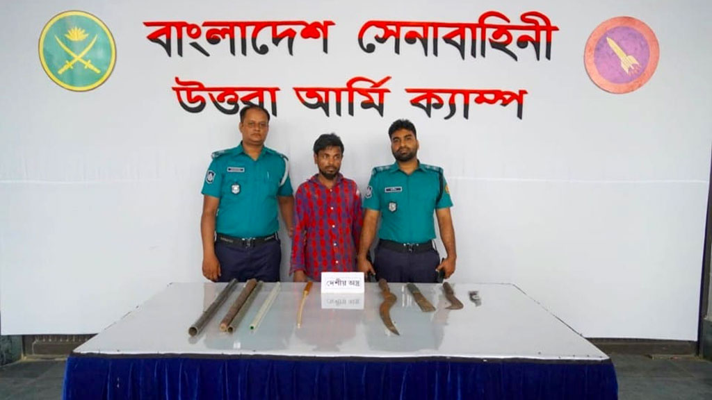 পরে উত্তরা আর্মি ক্যাম্প থেকে পাঠানো এক সংবাদ বিজ্ঞপ্তিতে এ তথ্য জানানো হয়েছে। সেনাবাহিনী জানিয়েছে, গোপন তথ্যের ভিত্তিতে উত্তরা ৮ নম্বর সেক্টরের বাইদা বস্তিতে অভিযান চালিয়ে কুখ্যাত অপরাধী ও শীর্ষ সন্ত্রাসী আলতাফের ডান হাত মোহাম্মদ আলীকে দেশীয় অস্ত্রসহ গ্রেপ্তার করা হয়েছে। তাঁর কাছ থেকে বিভিন্ন সাইজের চারটি ছুরি ও চাকু এবং তিনটি লোহার পাইপ, দুটি লাঠি জব্দ করা হয়েছে।