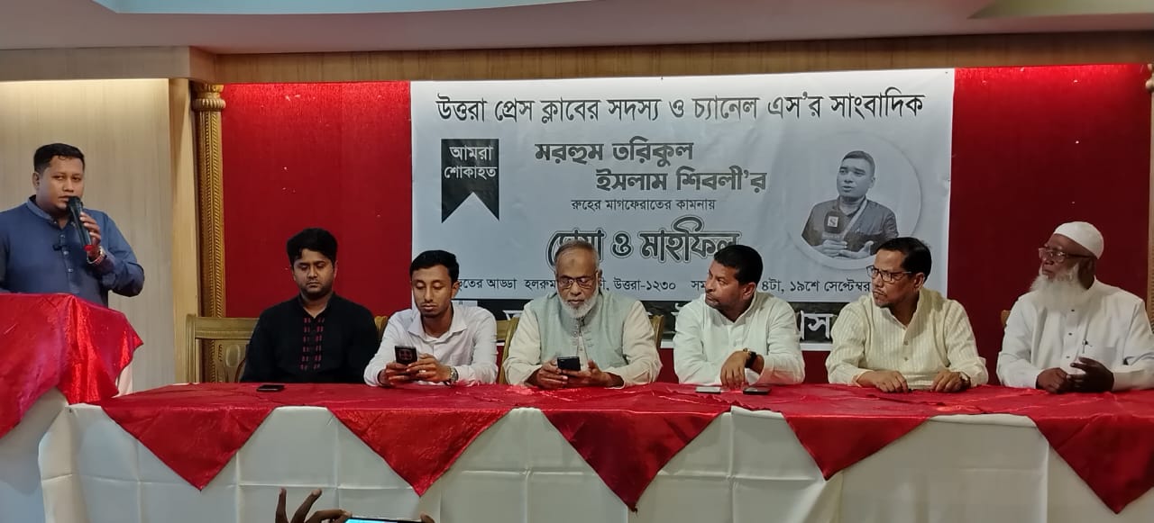 ইব্রাহিম হাসান: উত্তরা প্রেসক্লাবের আয়োজনে মরহুম শিবলী রূহের মাগফেরাত কামনায় এক দোয়া মাহফিল ও আলোচনা সভা অনুষ্ঠিত হয়েছে। শুক্রবার (১৯শে সেপ্টেম্বর) বিকেল ৪টায় রাজধানীর উত্তরা রাজলক্ষী ভুতের আড্ডা রেস্টুরেন্টে এ অনুষ্ঠান আয়োজন করা হয়।