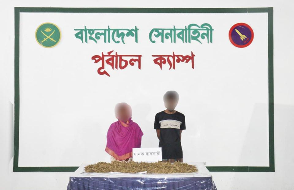 রাজধানীর খিলক্ষেত থেকে গাঁজাসহ মো. রিপন (৩৫) ও মোছা. বন্যা (৩২) নামের দুই মাদক কারবারিকে গ্রেপ্তার করেছে সেনাবাহিনী।