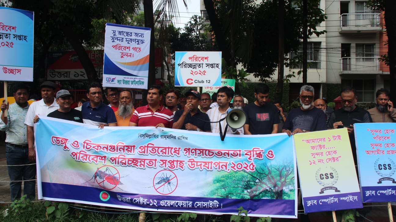 অনুষ্ঠানে সভাপতিত্ব করেন উত্তরা ১২ নং সেক্টর ওয়েলফেয়ার সোসাইটির সভাপতি শরীফ সান্টু। তিনি বলেন, “আমরা যারা নগরবাসী, তাদের সবচেয়ে বড় দায়িত্ব হলো নিজেদের বাসস্থান ও চারপাশের পরিবেশ পরিচ্ছন্ন রাখা। মশাবাহিত রোগ যেমন ডেঙ্গু ও চিকুনগুনিয়া আমাদের শহুরে জীবনের জন্য এক বড় হুমকি। কিন্তু আমরা যদি সামান্য সতর্ক হই—জমে থাকা পানি পরিষ্কার রাখি, ফুলের টব, ছাদ, ড্রেন ইত্যাদি নিয়মিত পরিস্কার করি, তাহলেই এ রোগের বিস্তার রোধ সম্ভব।