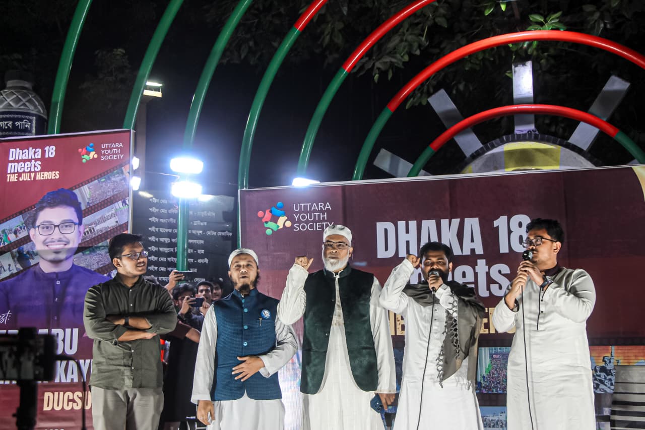 সোমবার (০৯ ফেব্রুয়ারি) দিবাগত রাত সাড়ে ৯টায় উত্তরার মুগ্ধ মঞ্চে উত্তরা ইয়ুথ সোসাইটির উদ্যোগে আয়োজিত 'ঢাকা ১৮ মিটস দ্য জুলাই হিরোস' অনুষ্ঠানে তিনি এসব কথা বলেন। এর আগে, রাত ৯টায় উত্তরার ১২/১৩ মোড় থেকে আরিফুল ইসলাম ও সাদিক কায়েমের নেতৃত্বে একটি মিছিল বের করা হয়। মিছিলটি মুগ্ধ মঞ্চে এসে শেষ হয়।