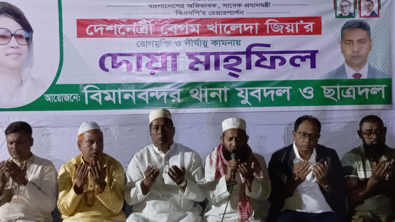 দোয়া মাহফিলের প্রধান অতিথির বক্তব্যে আলমগীর হোসাইন বলেন দেশনেত্রী বেগম খালেদা জিয়া চিকিৎসাধীন রয়েছেন, বিমানবন্দর থানা যুবদল ও ছাত্রদলের পক্ষ থেকে আজকের এই দোয়া মাহফিলের আয়োজন করা হয়েছে, আমি আমাদের নেত্রী বেগম খালেদা জিয়ার সুস্থতার জন্য সকলের নিকট দোয়া চাই। আমরা আশা করি ইনশাআল্লাহ আমাদের আপোষহীন নেত্রী দ্রুত সুস্থ হয়ে আমাদের মাঝে ফিরে আসবেন।