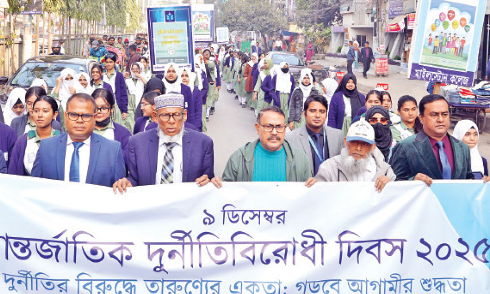 মুক্তমন রিপোর্ট : ‘দুর্নীতির বিরুদ্ধে তারুণ্যের ঐক্য: গড়বে আগামীর শুদ্ধতা’—এই প্রতিপাদ্য নিয়ে আন্তর্জাতিক দুর্নীতি বিরোধী দিবস-২০২৫ উপলক্ষে মানববন্ধন ও র্যালি অনুষ্ঠিত হয়েছে রাজধানীর উত্তরার মাইলস্টোন কলেজে। গত ৯ ডিসেম্বর আয়োজিত এ কর্মসূচির উদ্যোগ নেয় ঢাকা মহানগর দুর্নীতি প্রতিরোধ কমিটি, উত্তরা অঞ্চল।