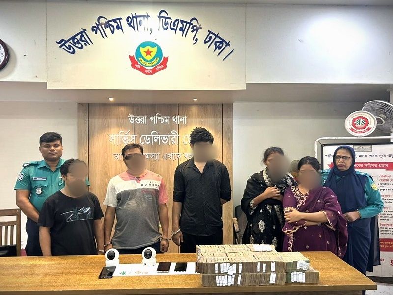 গ্রেফতারকৃতরা হলো- ১। মোঃ মাসুম পারভেজ (৩৮) ২। মোঃ সোলাইমান হোসেন (৩৮) ৩। শফিকুল ইসলাম সৌরভ (২৭) ৪। মোছাঃ মায়া (২৫) ও ৫। মোছাঃ রুলি খানম (১৯)।