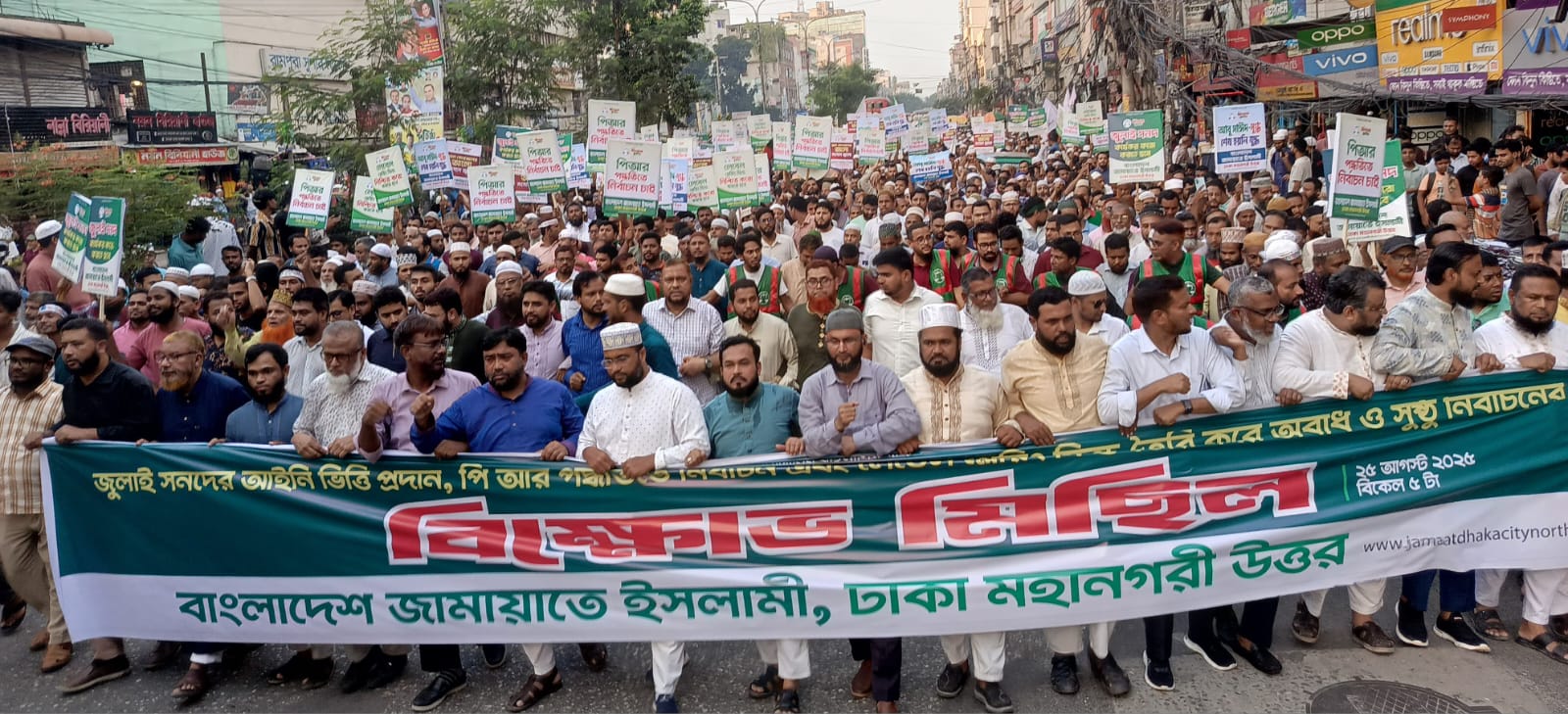 ইব্রাহিম হাসান : ঢাকা মহানগরী উত্তর জামায়াতে ইসলামীর উদ্যোগে রাজধানীর রামপুরায় আয়োজিত বিক্ষোভ সমাবেশে কেন্দ্রীয় নির্বাহী পরিষদ সদস্য ও ঢাকা মহানগরী উত্তরের আমীর মোহাম্মদ সেলিম উদ্দিন বলেছেন, “আগামী নির্বাচন অবশ্যই পিআর (Proportional Representation) পদ্ধতিতেই হতে হবে।”