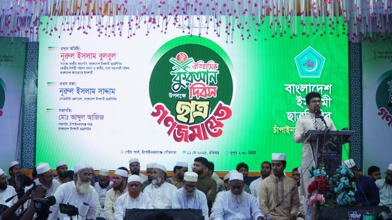 তিনি আরও বলেন, “যারা এক সময় কোরআনের আয়াতকে বিশৃঙ্খলাকারী বলে বাজেয়াপ্ত করেছিল, পরে তারাই সেই অবস্থান থেকে সরে এসেছে। কোরআন বিজ্ঞানে পরিপূর্ণ, এতে রয়েছে অসংখ্য নিদর্শন। ইসলামী ছাত্রশিবির কখনো অর্থলুট, ধর্ষণ বা অপরাধে লিপ্ত নয়; বরং তারা কেবল কোরআনের দিকেই ছাত্রসমাজের প্রতি আহ্বান জানায়।”