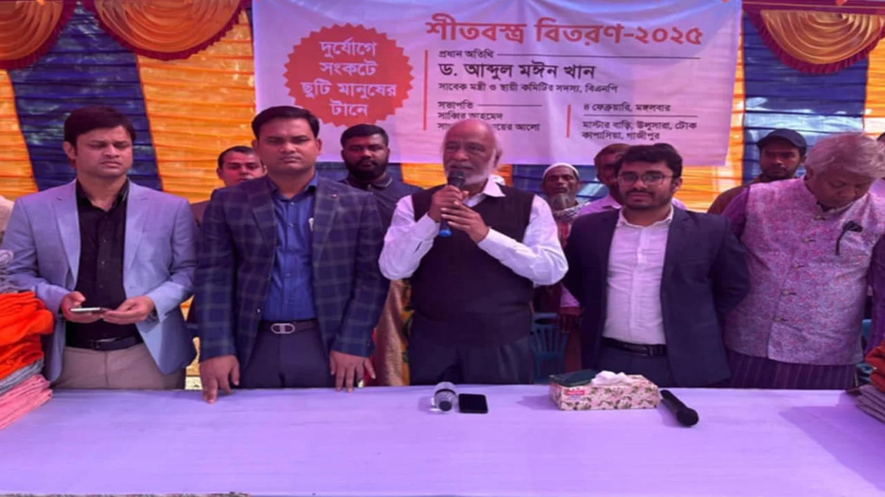 এদিন বিকেলে গাজীপুরের কালিগঞ্জের বরাইয়া পশ্চিমপাড়া গ্রামে হতদরিদ্র মানুষের মধ্যে কম্বল বিতরণ করেন আব্দুল মঈন খান।