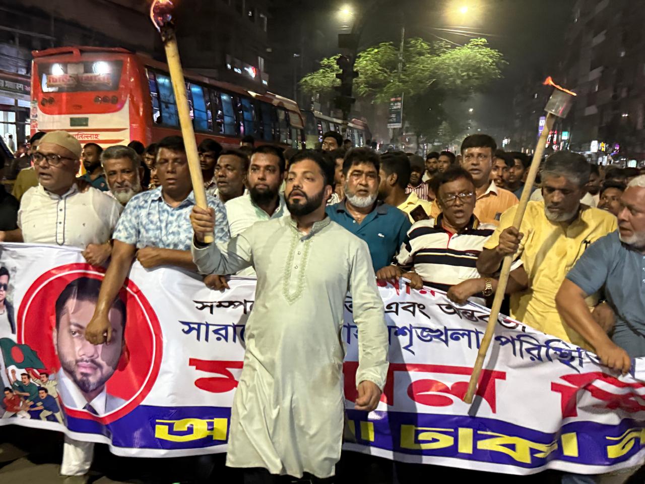 রবিবার রাজধামীর নয়াবাজারে বিএনপির ভারপ্রাপ্ত চেয়ারম্যান তারেক রহমানের বিরুদ্ধে কটুক্তি, অন্তবর্তীকালীন সরকারের নির্লিপ্ততায় সারাদেশে আইনশৃঙ্খলা পরিস্থিতির অবনতির প্রতিবাদে এক মশাল মিছিলপূর্ব এক সংক্ষিপ্ত সমাবেশে তিনি এসব কথা বলেন। নয়াবাজার মোড় থেকে শুরু হয়ে মশাল মিছিলটি তাতীবাজার, গুলিস্তান, পল্টন হয়ে নয়াপল্টন বিএনপির কার্যালয়ের সামনে এসে শেষ হয়।