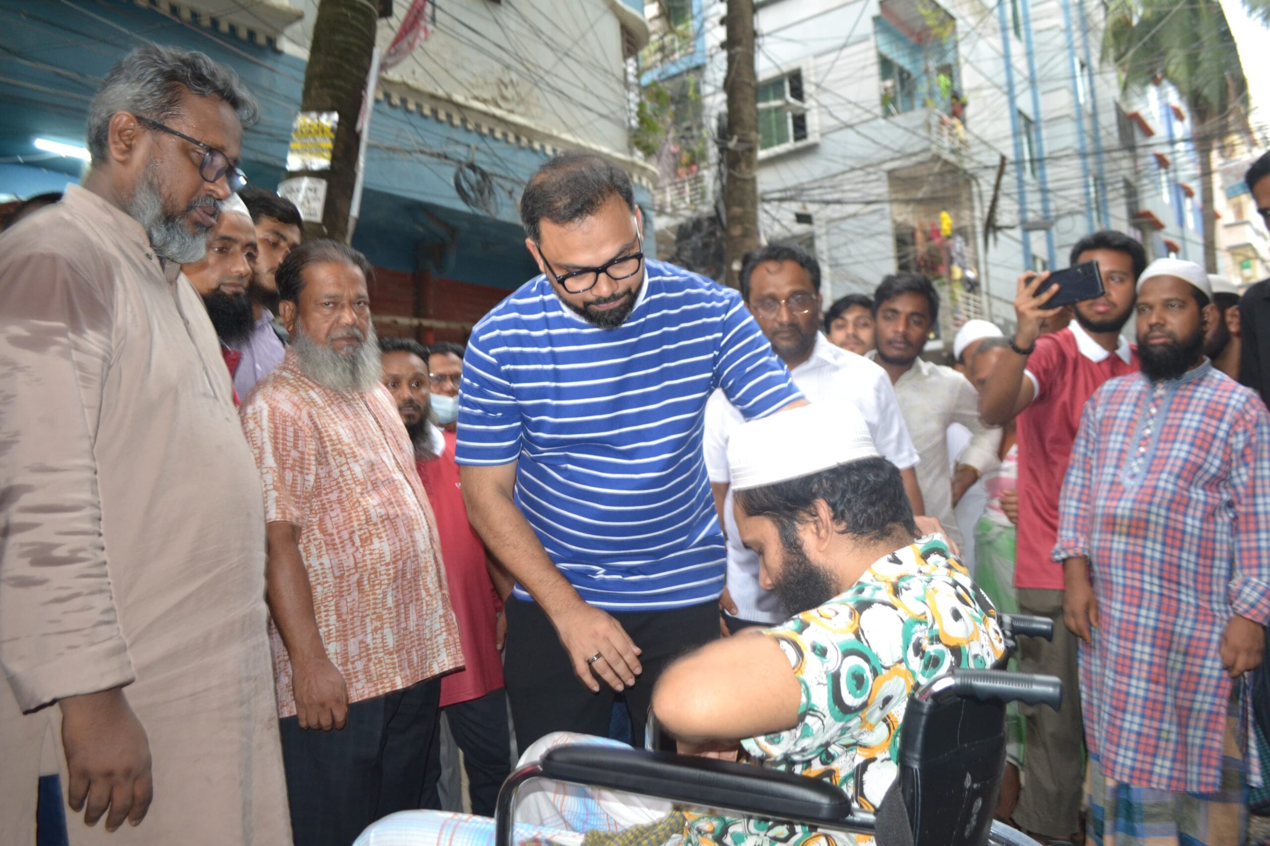 বিধবা ও স্বামী হারাদের সেলাই মেশিন বিতরন এবং শারিরীক প্রতিবন্ধিদের হুইল চেয়ারও বিতরণ করেন আমিনুল হক।