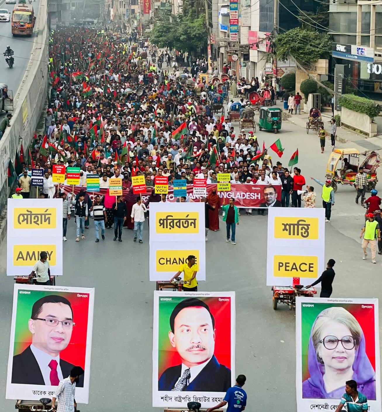 ঢাকা মহানগর উত্তর বিএনপির সাবেক সহ সাধারণ সম্পাদক হাফিজুর রহমান সাগীরের নেতৃত্বে বিএনপি, ঢাকা মহানগর উত্তর স্বেচ্ছাসেবক দলের সহ-সভাপতি ও উত্তরা পশ্চিম থানা স্বেচ্ছাসেবক দলের সভাপতি মোস্তফা কামাল হৃদয়ের নেতৃত্বে স্বেচ্ছাসেবক দল, ঢাকা মহানগর উত্তর ছাত্রদলের সদ্য সাবেক সভাপতি মেহেদী হাসান রুয়েলের নেতৃত্বে যুবদল এবং ঢাকা মহানগর উত্তর ছাত্রদলের সিনিয়র সহ-সভাপতি রবিউল আওয়াল ভূঁইয়া রবির নেতৃত্বে ছাত্রদলের নেতাকর্মীরা সৌহার্দ্য, পরিবর্তন ও শান্তির বার্তা নিয়ে মিছিলে অংশ নেন।