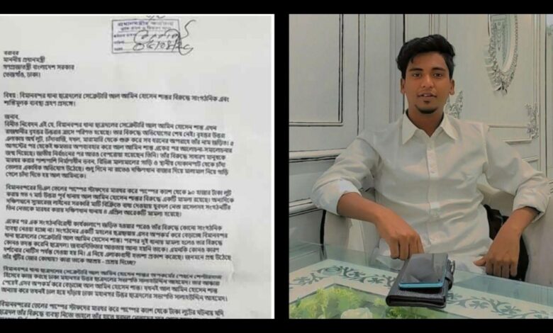 বিমানবন্দর থানা ছাত্রদলের সেক্রেটারি আল আমিন হোসেন শান্তর বিরুদ্ধে সাংগঠনিক এবং শাস্তিমূলক ব্যবস্থা গ্রহণের জন্য প্রধানমন্ত্রীর কাছে আবেদন জমা দেওয়া হয়েছে।