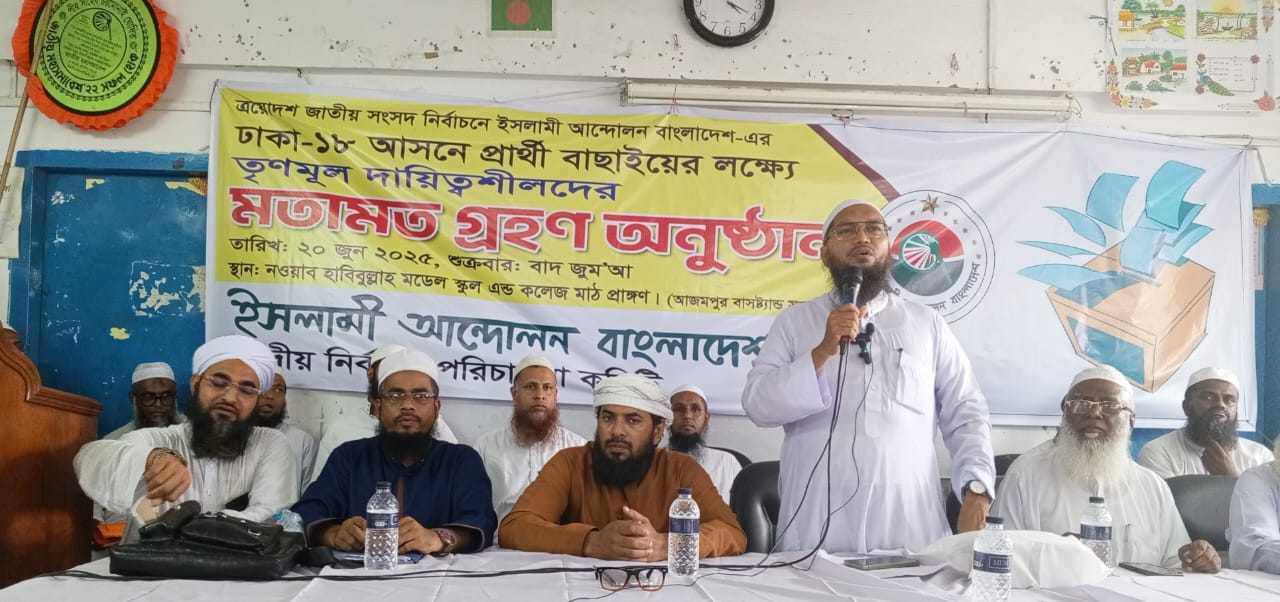 আজ ২০ জুন’২৫ শুক্রবার রাজধানী উত্তরের ঢাকা-১৬ ও ১৮ আসনে ত্রয়োদশ জাতীয় সংসদ নির্বাচনে ইসলামী আন্দোলনের প্রার্থী বাছাইয়ে তৃণমূল নেতাদের মতামত গ্রহণ অনুষ্ঠানে প্রধান অতিথির বক্তব্যে তিনি এসব কথা বলেন।
